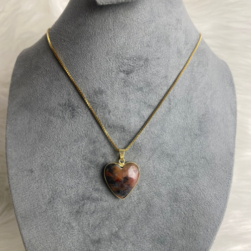 Necklace featuring a natural Black Jasper stone set in a gold-plated copper frame, paired with a sta..