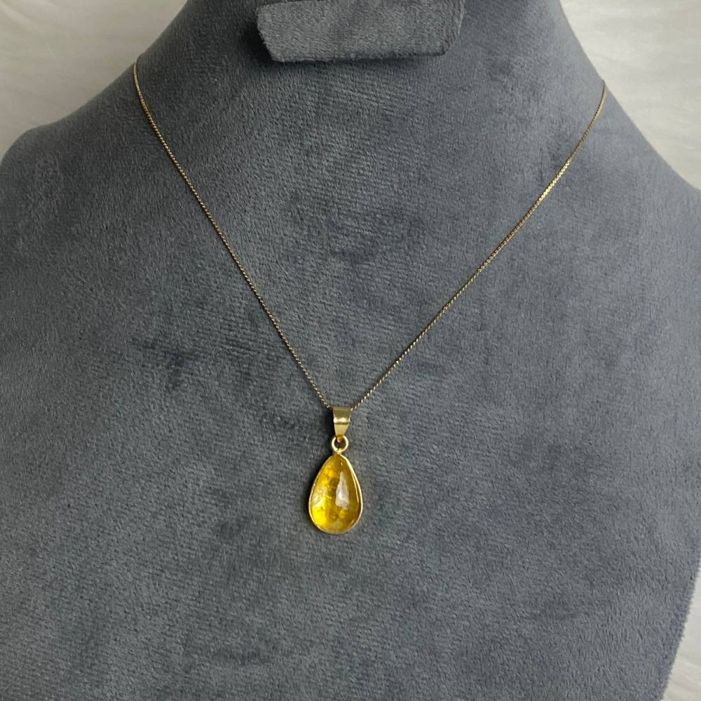 Necklace featuring Citrine set in a gold-plated copper frame, with a rust-resistant stainless steel chain. Citrine is known for promoting positive energy, optimism, and mental clarity.
