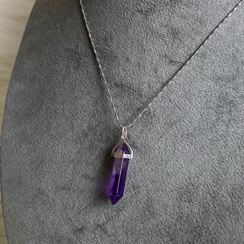 A natural amethyst necklace with a calming purple tone that brings a sense of balance and relaxation. Made with high-quality stainless steel, rust-resistant and perfect for everyday wear, featuring a simple and elegant design