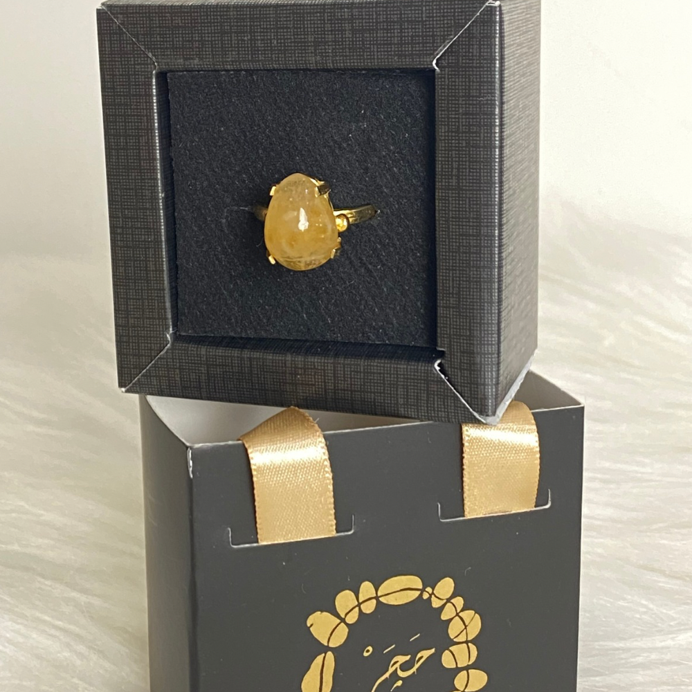 An elegant ring featuring a natural citrine stone with a warm golden-yellow glow and soft shine. Its minimal design adds a refined touch of brightness for everyday wear. Made of gold-plated brass, citrine is associated with positivity, joy, and a warm uplifting energy.