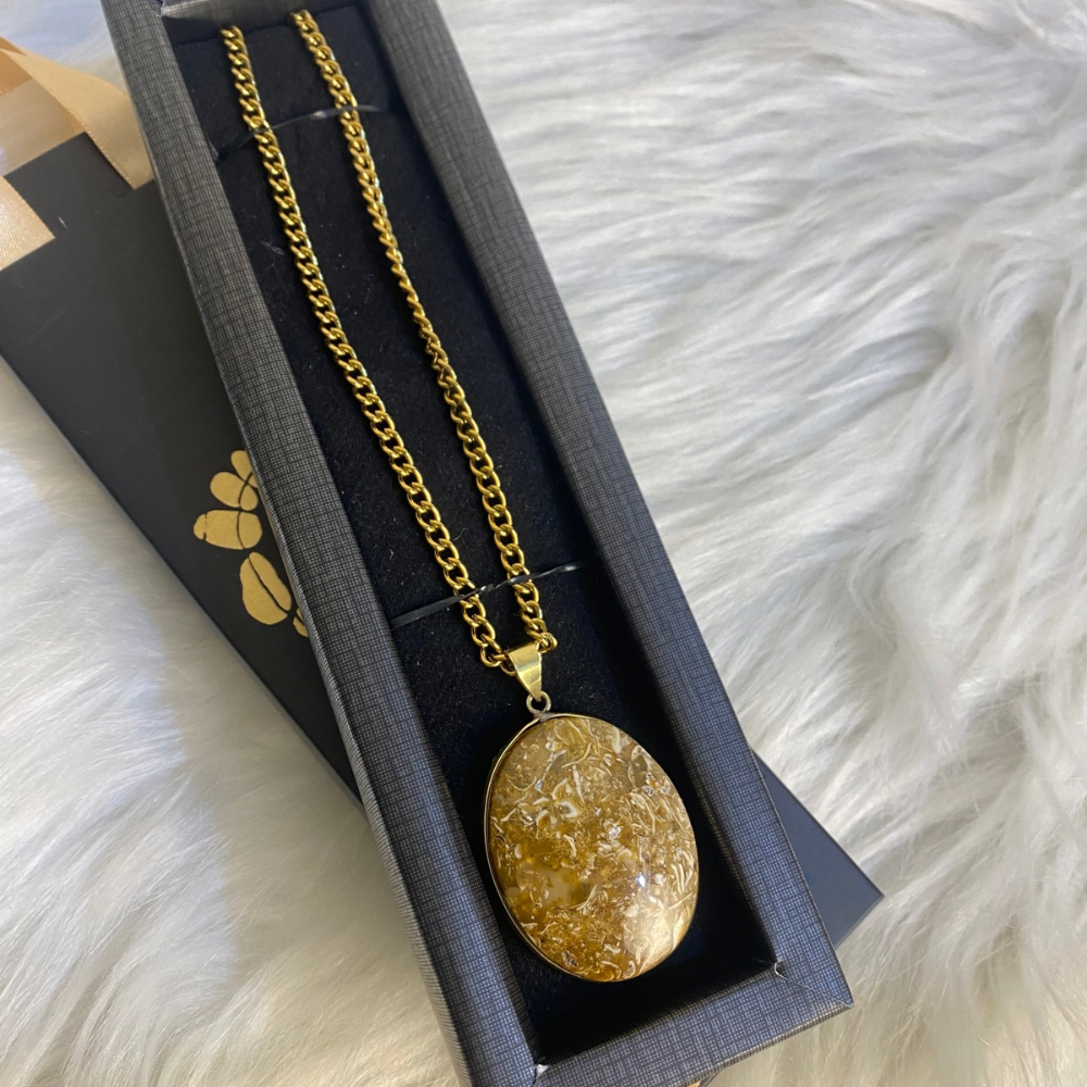 A delicate necklace featuring natural Maryam stone, known for its calming energy and emotional balance. Made with a stainless steel chain that is rust-resistant, perfect for everyday wear with a simple, elegant touch.