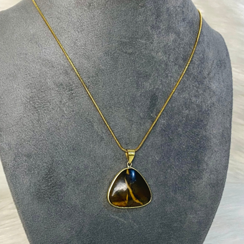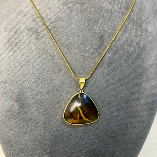 A necklace featuring natural Tiger’s Eye with rich brown and golden tones. Known for its strength, confidence, and protective energy. Made with rust-resistant stainless steel, perfect for everyday wear.