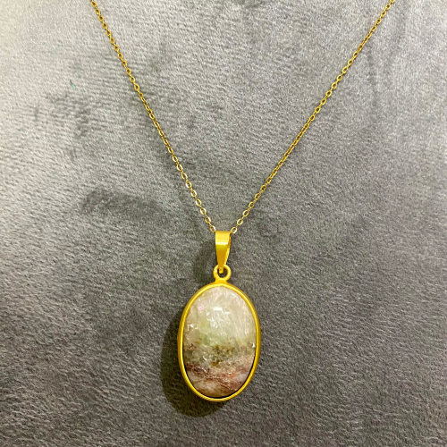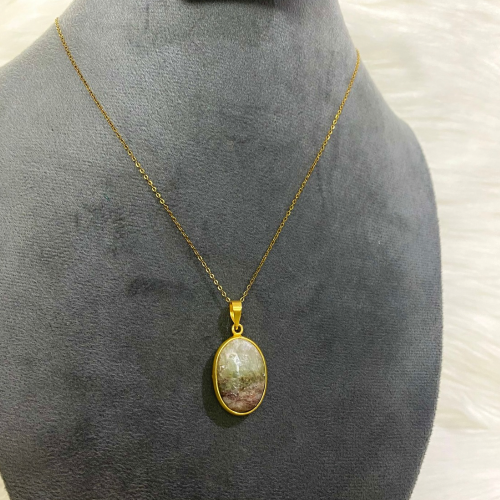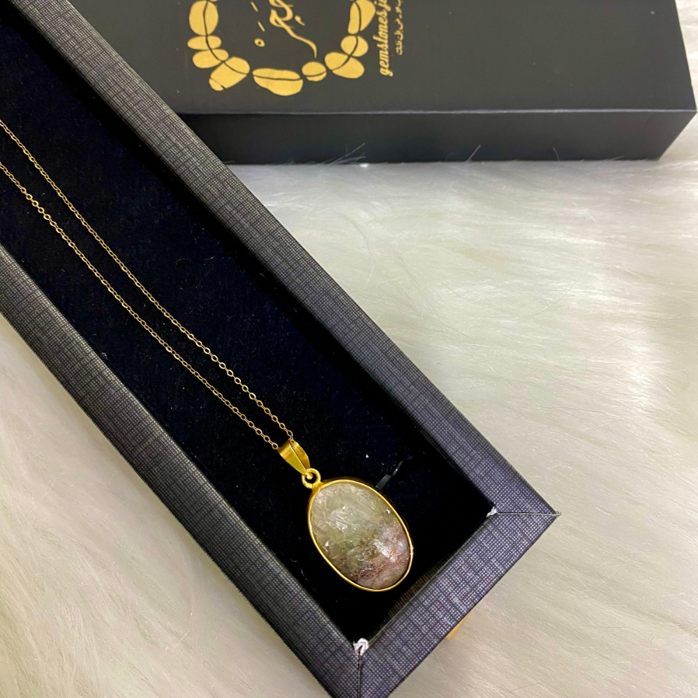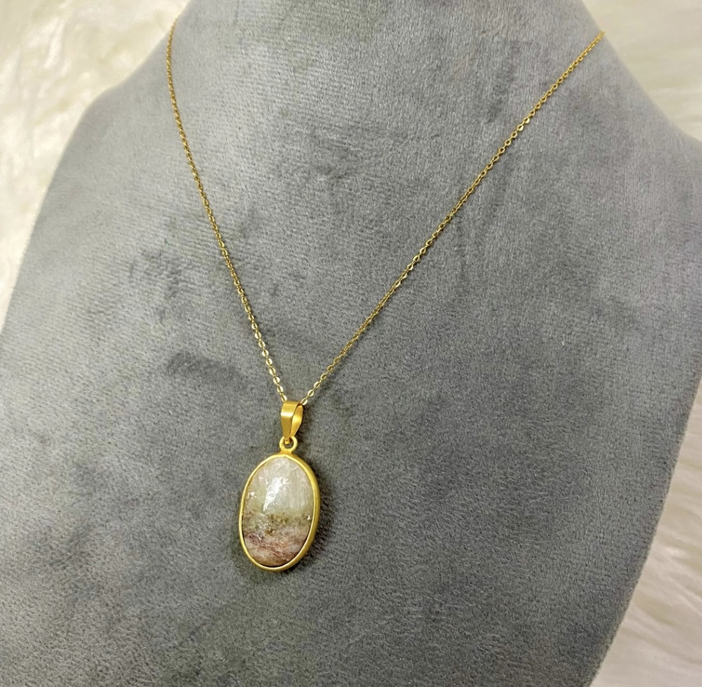 Necklace featuring a transparent Included Quartz stone with natural tones that give each piece a unique, scenic appearance.