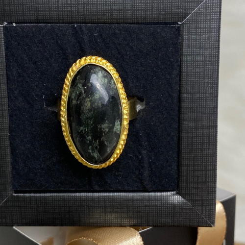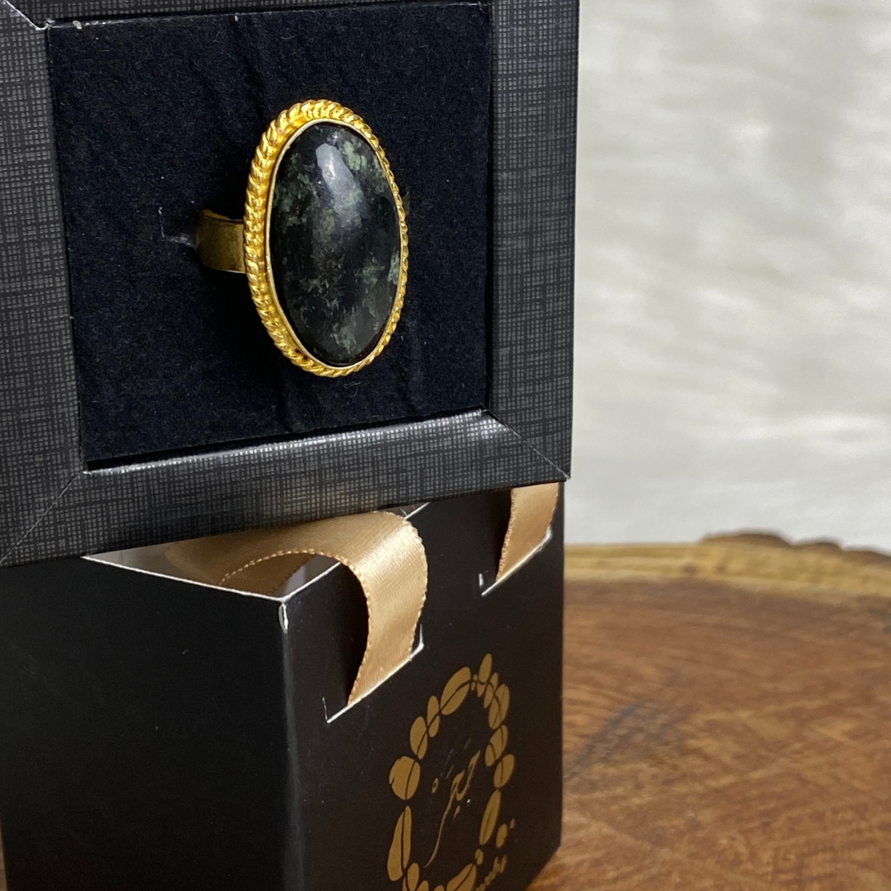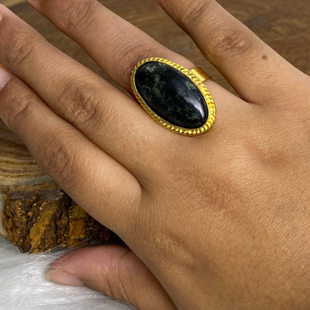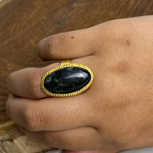 Gold-plated copper ring featuring a natural Jasper stone with its unique color and smooth finish. A versatile piece perfect for everyday wear. ????