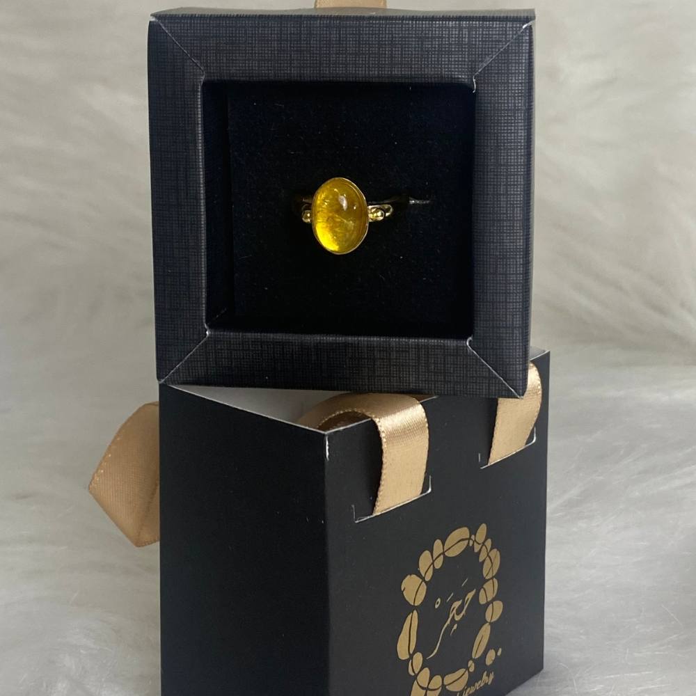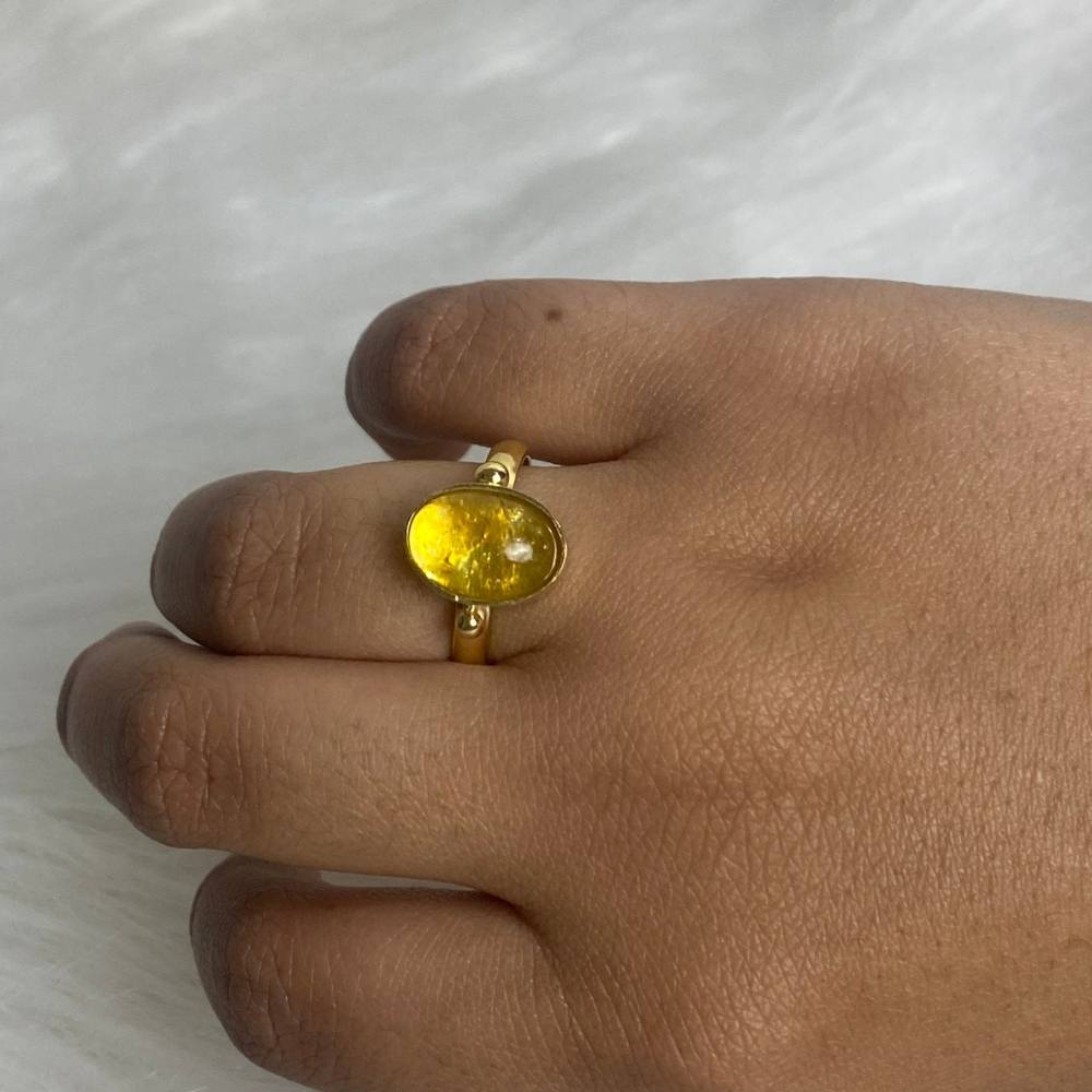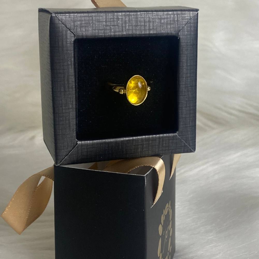 Ring featuring Citrine set in a gold-plated copper frame with an elegant design. Citrine is known for promoting positive energy, optimism, and mental clarity.