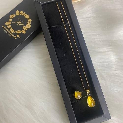 Elegant set featuring Citrine, including a necklace and a ring, set in gold-plated copper. Citrine is known for promoting positive energy, optimism, and mental clarity.