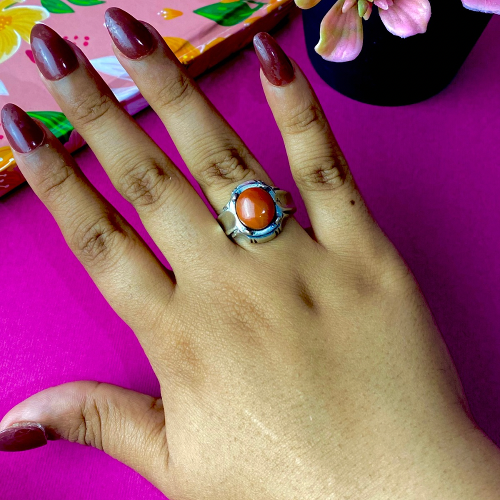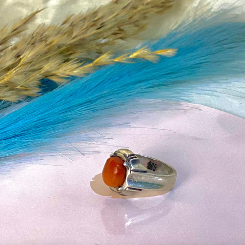 925 Sterling silver ring with a natural orange agate stone, radiating warmth and elegance. A unique piece that adds vibrance to your style, suitable for any occasion.