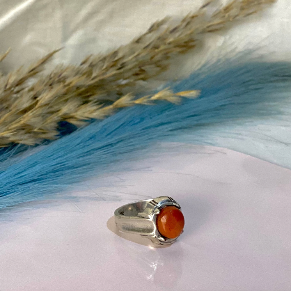 Silver Ring with Orange Agate Stone